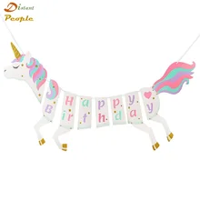 .Gallery for 1pc Cartoon Unicorn Happy Birthday Banner Party Paper Flags For Kids Birthday Decoration Party Supplies